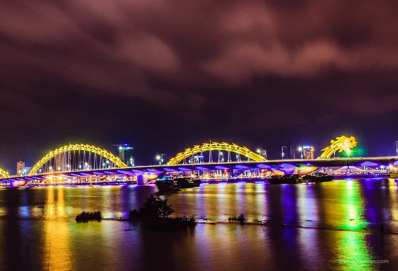Nếu bạn đến thăm Đà Nẵng lần đầu tiên, chuyến đi sẽ không trọn vẹn nếu không ghé thăm Cầu Rồng. Cây cầu dài 666 mét là biểu tượng của thành phố và là điểm thu hút khách du lịch nổi tiếng với màn trình diễn ánh sáng, lửa và nước rực rỡ.
